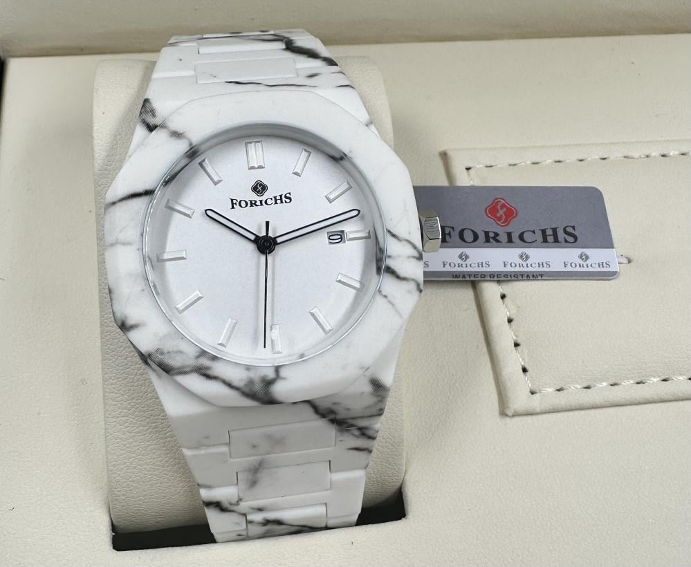 ساعة رجالية فاخرة من الكاربون باللون الأبيض