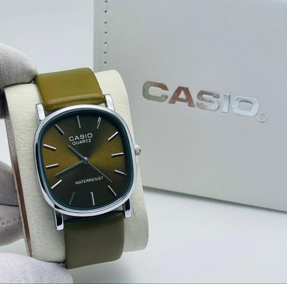 ساعة كاسيو جلد اللون زيتي