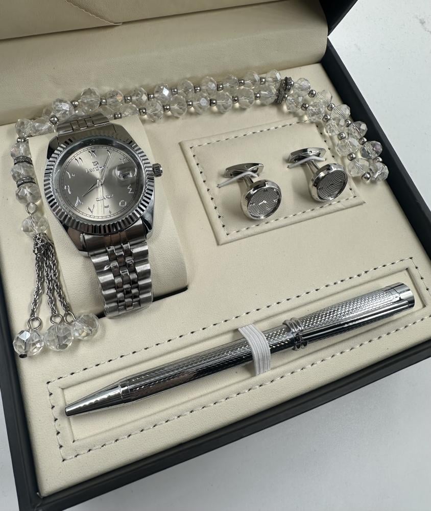 هدية رجالية بتصميم أنيق تتكون من ساعة مميزة و قلم فاخر و كبك يزيد من كشختك .