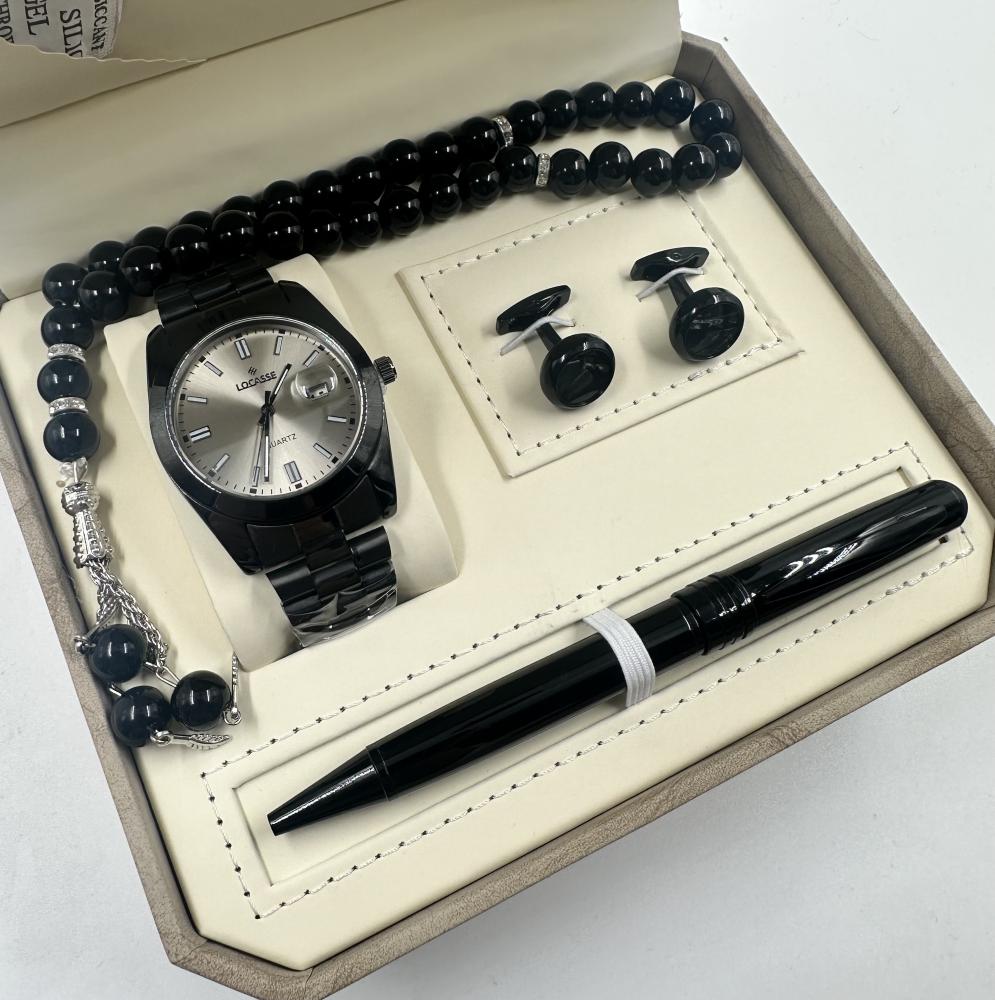 هدية رجالية بتصميم أنيق تتكون من ساعة مميزة و قلم فاخر و كبك يزيد من كشختك .